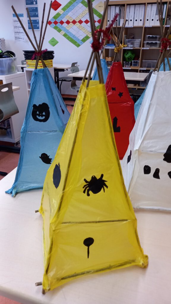 Die Pinguine gestalten aus Weidenstöcken und Zweigen ein Laternengerüst und überziehen dieses anschließend mit Transparentpapier. Aus Scherenschnittpapier schneiden sie herbstliche Motive aus und verzieren…