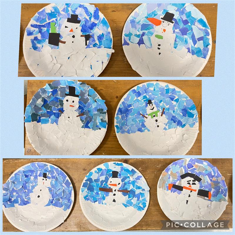 Ein Schneemann aus Papier In mehreren Schritten stellten die Kinder eine Collage her. Zunächst wurde Papier mit Wasserfarben in verschiedenen Blautönen eingefärbt. Nach dem…