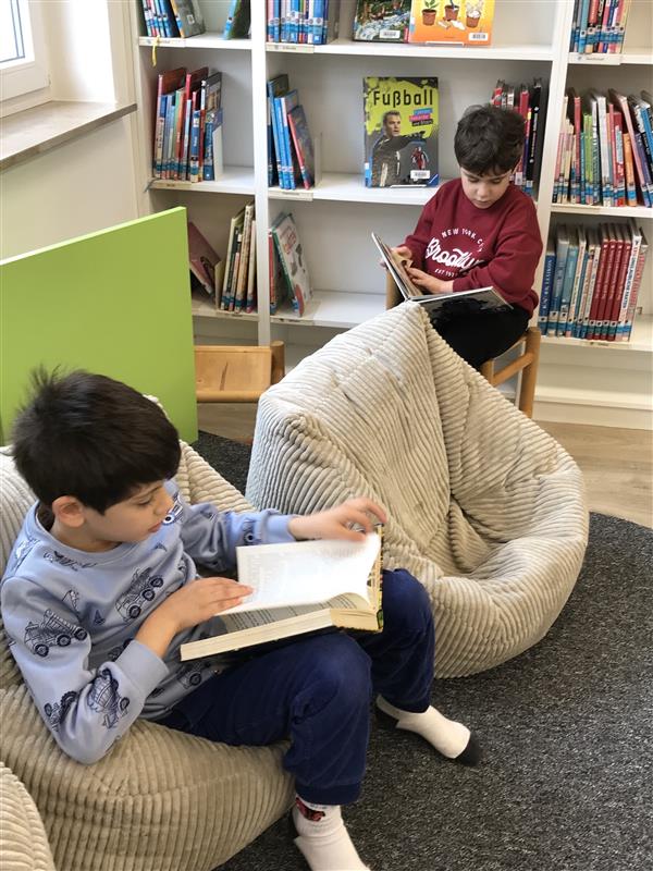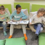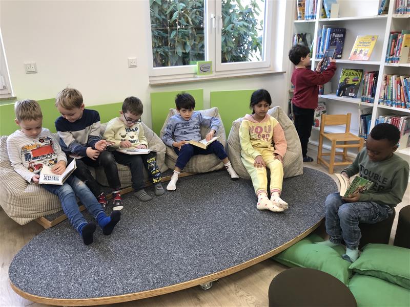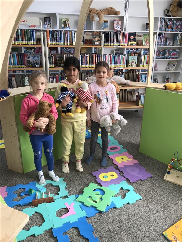 Im Rahmen von „Eitorf liest“ besuchten die Fische und Mäuse die Gemeindebibliothek und bekamen aus unterschiedlichen Büchern etwas vorgelesen. Anschließend durften die Kinder die Bibliothek erkunden und sich mit Büchern und Spielen beschäftigen. Es gab auch passend zur Einhorngeschichte Ausmalbilder.
