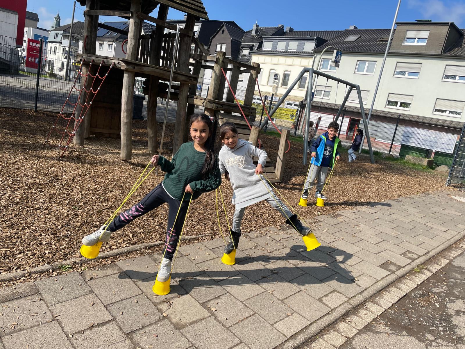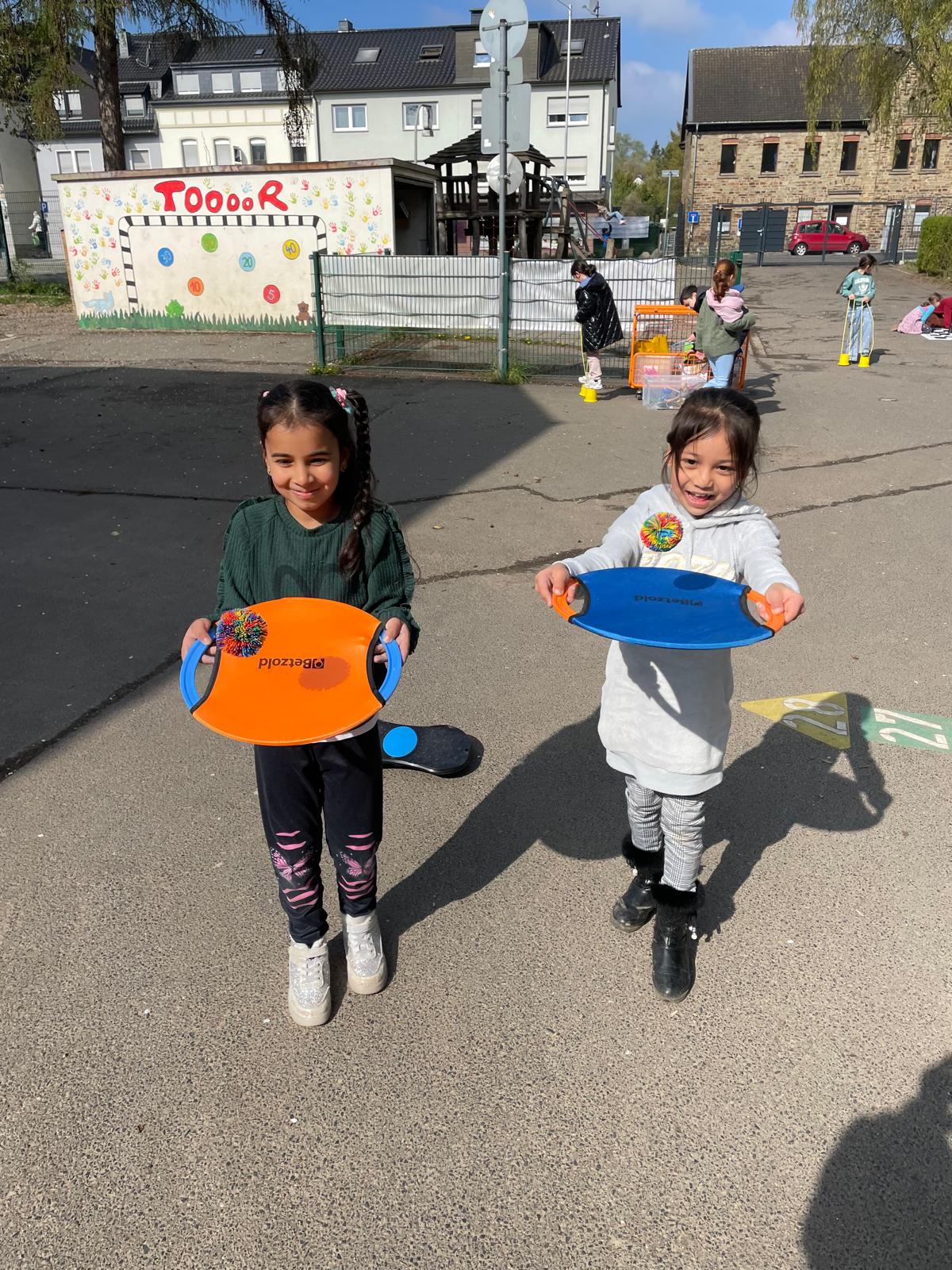 Die Spielsachen, die der Förderverein für unseren Schulhof gespendet hat, konnten wir jetzt endlich ausprobieren. Wir haben uns sehr darüber gefreut und gleich mit allem gespielt.