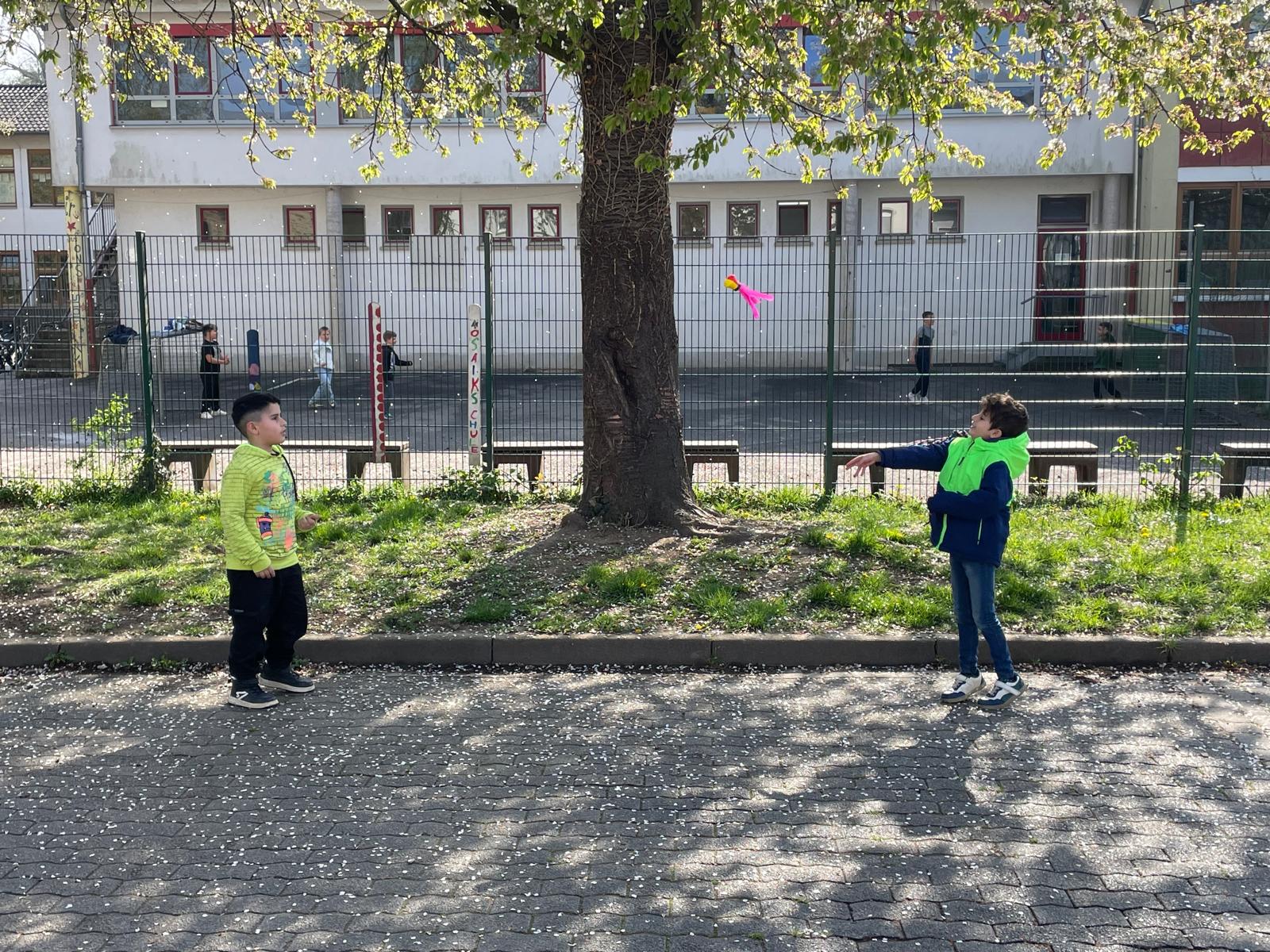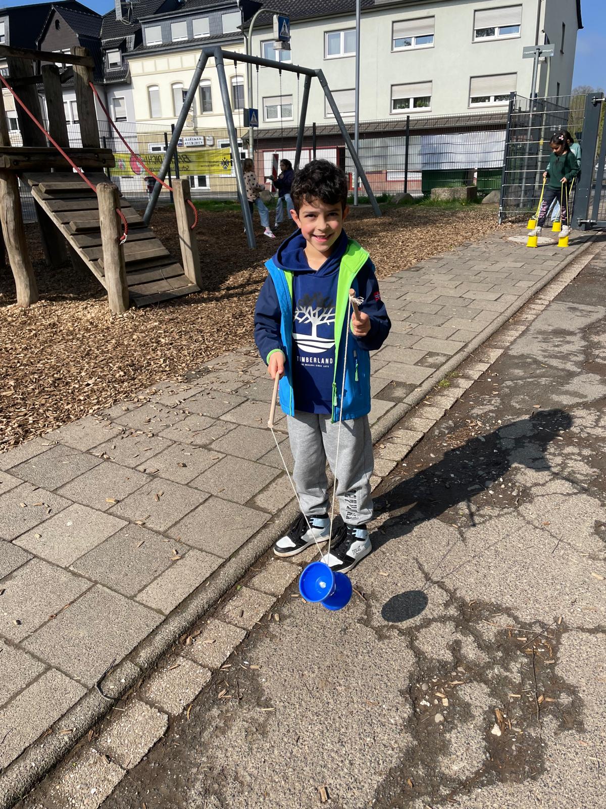 Auf dem Schulhof haben wir die Bälle benutzt, verschiedene Spiele gespielt und zusammen viel gelacht. Es gab viele tolle Sachen zum Ausprobieren und jeder hat etwas gefunden, das ihm besonders Spaß macht.