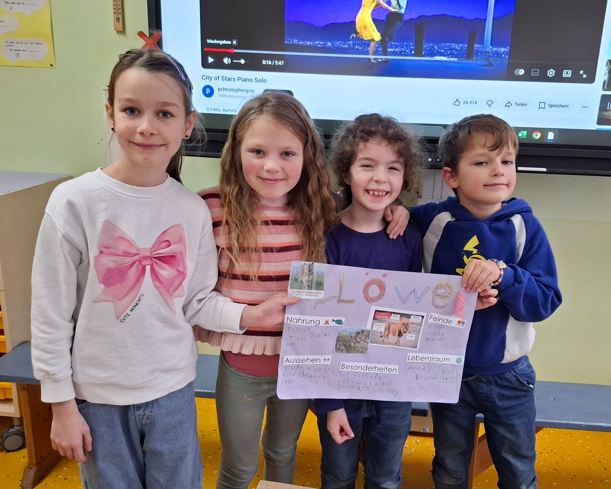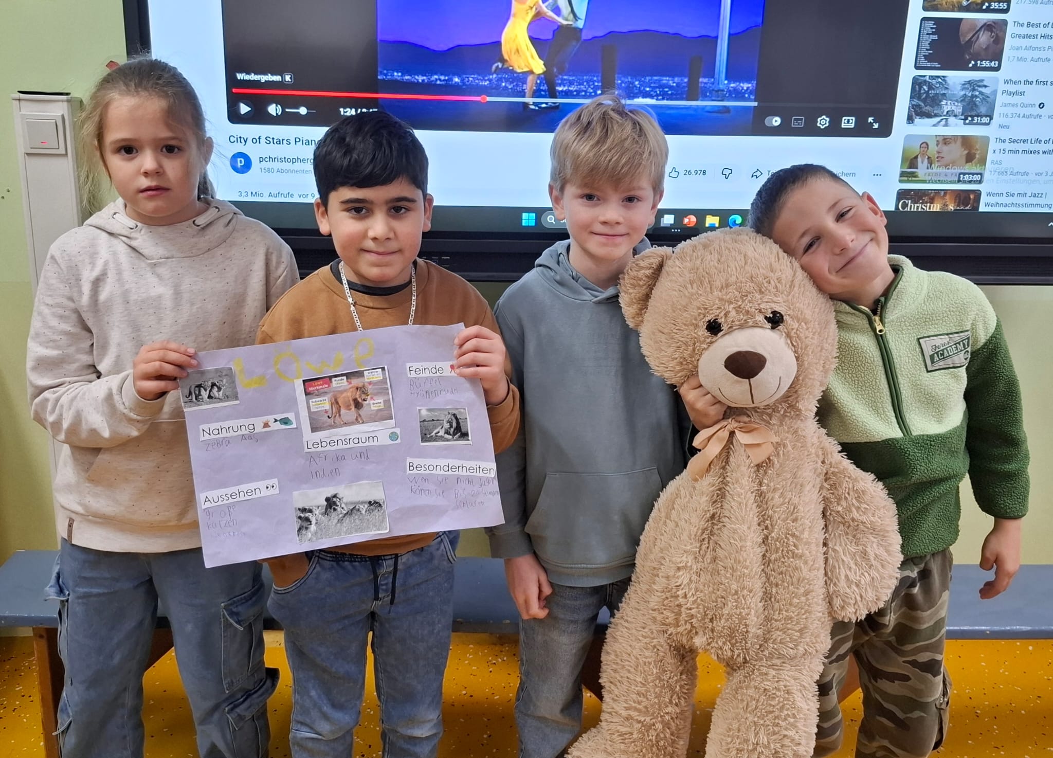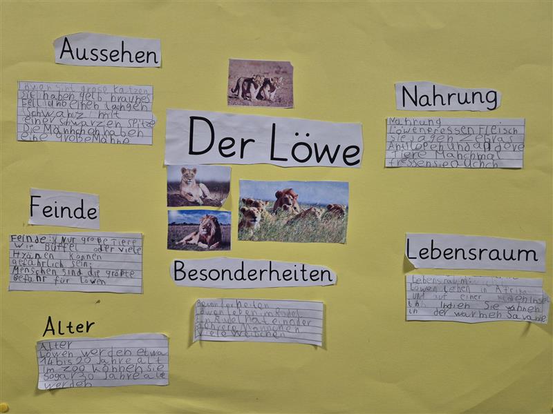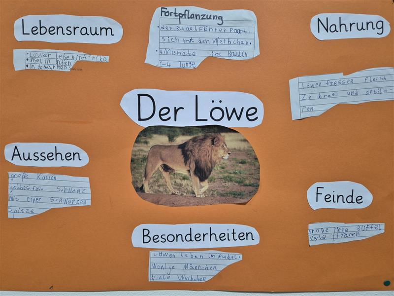 Gemeinsam gestalteten wir in Gruppen Plakate über den Löwen. Wir haben viel über ihn gelernt und unsere Plakate der Klasse vorgestellt.