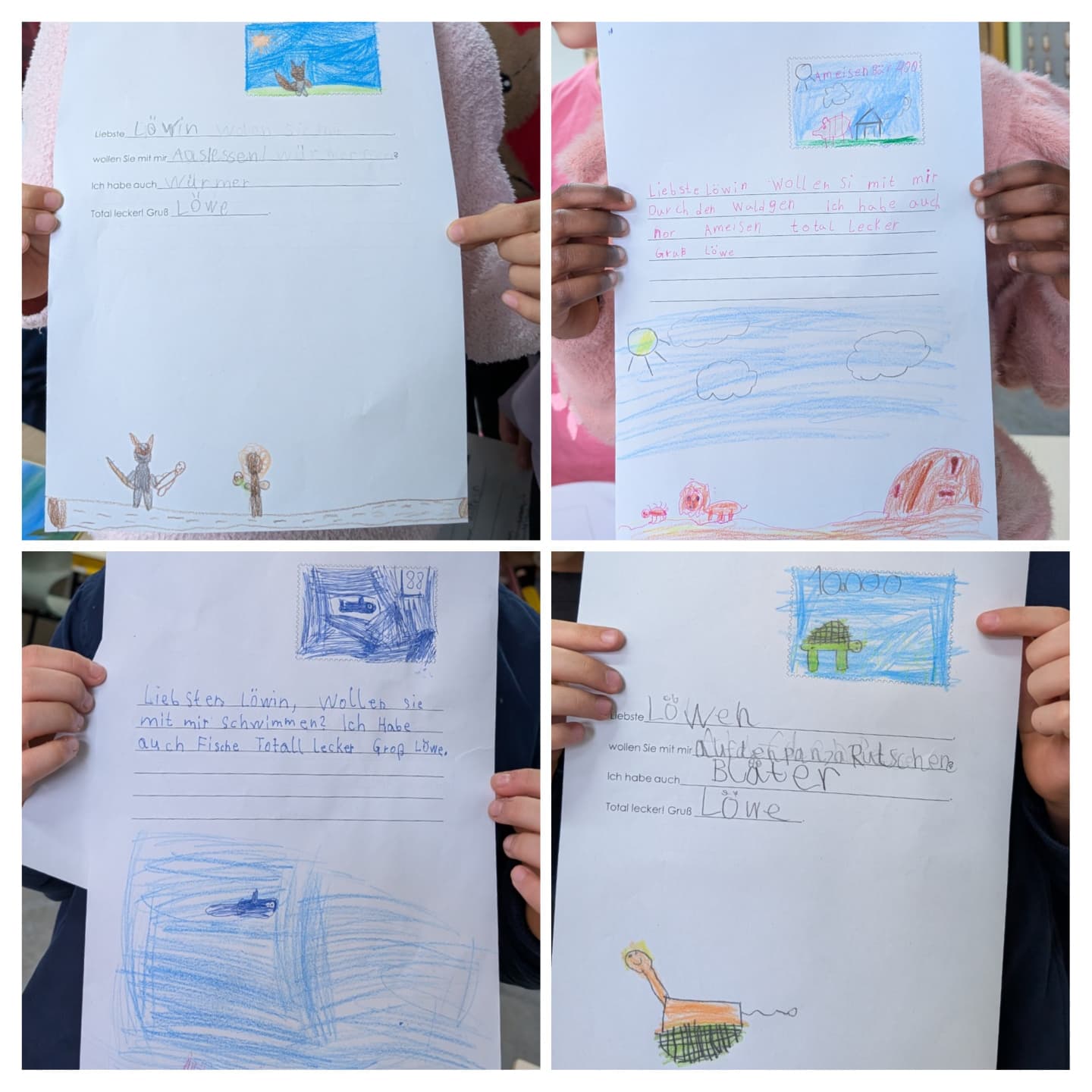 Mit viel Fantasie schrieben wir Briefe an die Löwin, aus der Sicht von verschiedenen Tieren. Dabei entstanden kreative und lustige Briefe.