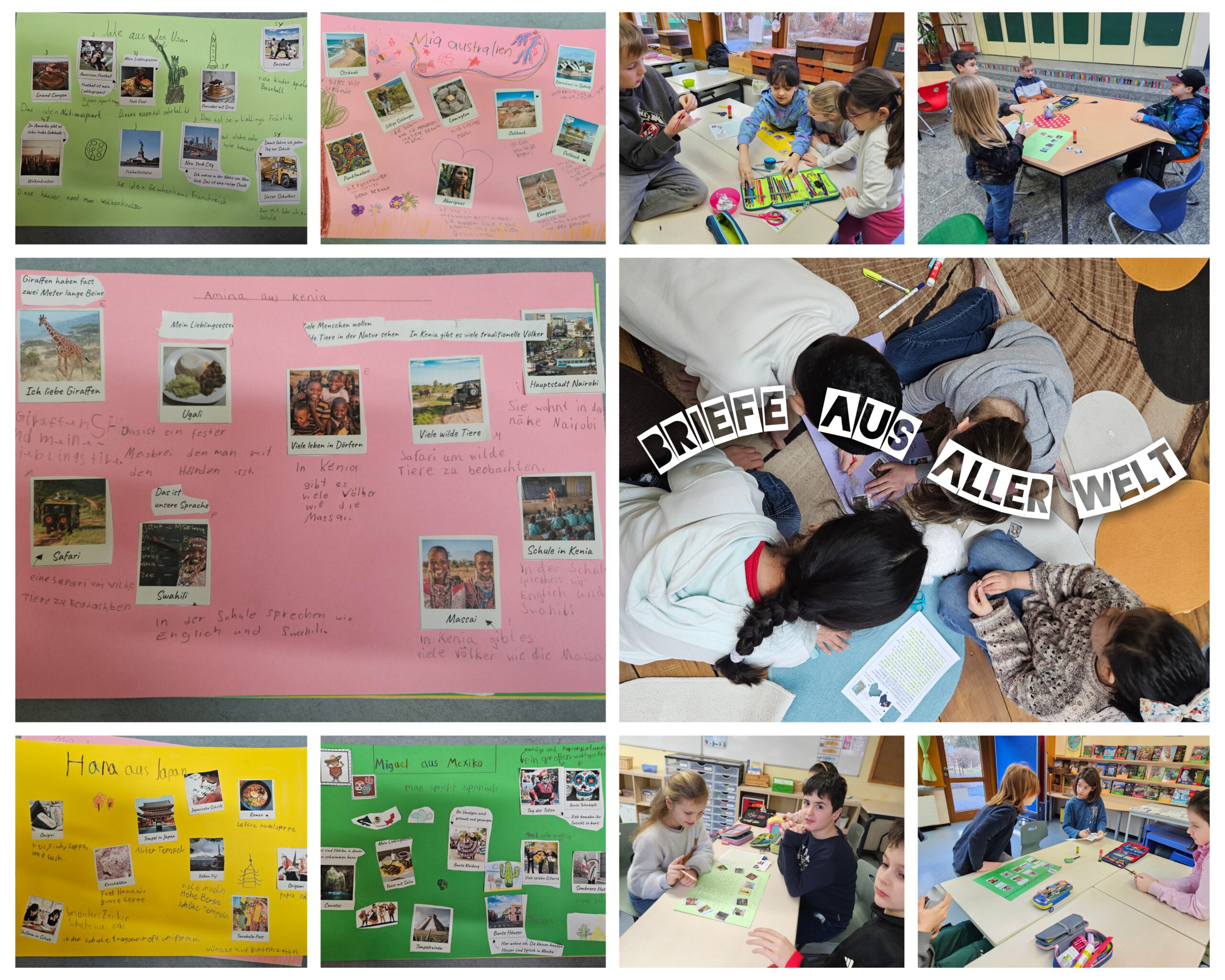 · Briefe aus aller Welt: Es gibt so viele Unterschiede und Gemeinsamkeiten! Wir haben Briefe aus Mexiko, Japan, Kenia, den USA und Australien gelesen und dazu ein Plakat erstellt.